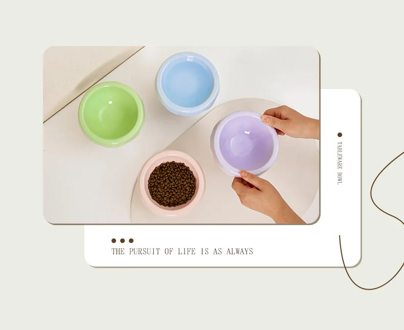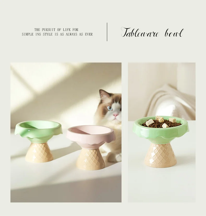 Ceramic cat bowl, pet bowl, ice cream bowl, high-legged, slanted neck protection, anti-knockover cat food bowl, drinking water