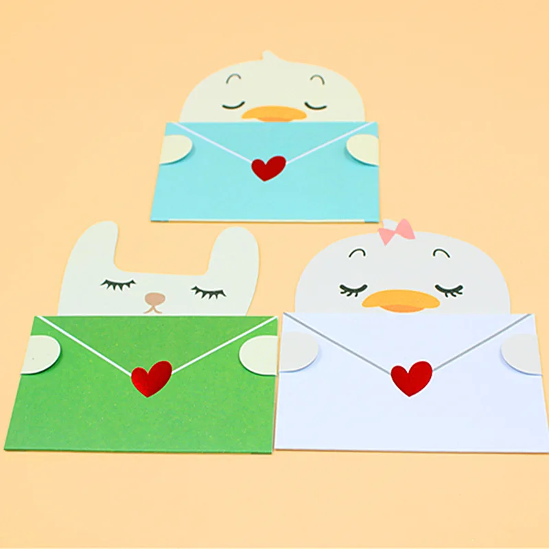 9pcs Cute Cartoon Gift Card Folded Envelope Greeting Card Holiday Wishes Postcards Animals Birthday Cards For Students Party