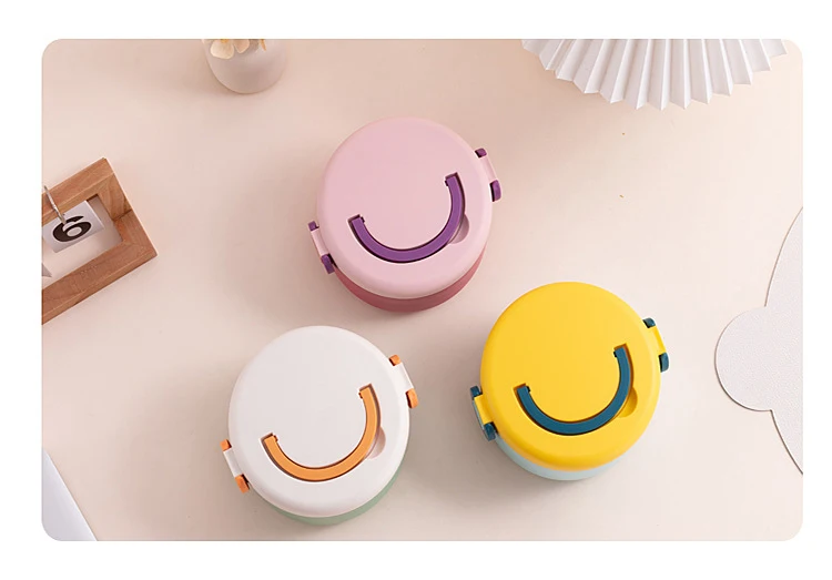 Cartoon Bento Box for Kids School Food Storage Container Microwavable Portable Picnic Basket Round Lunchbox with Handle