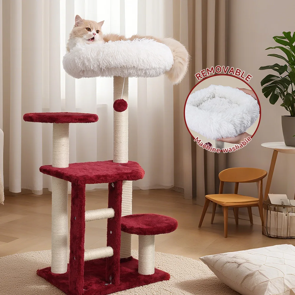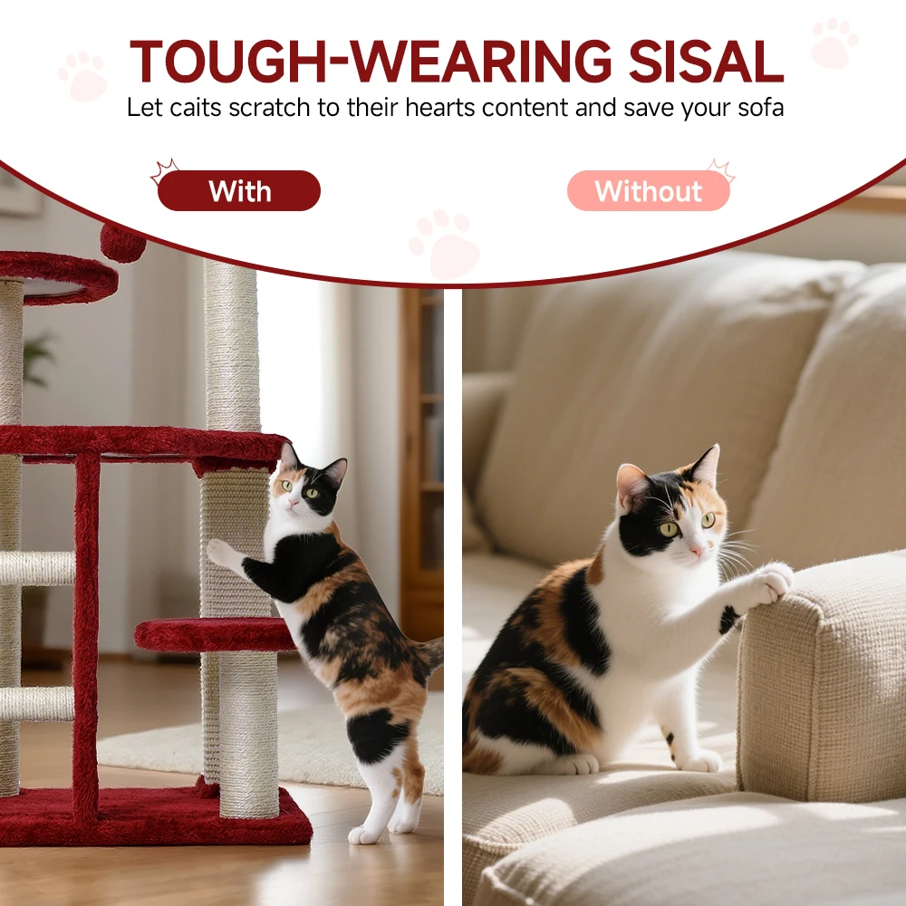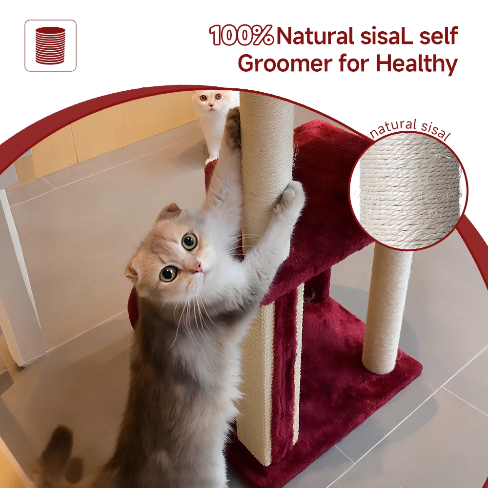 Equipped with a durable scratching post, this cat tower helps keep your cat's claws healthy while providing a destructible toy.