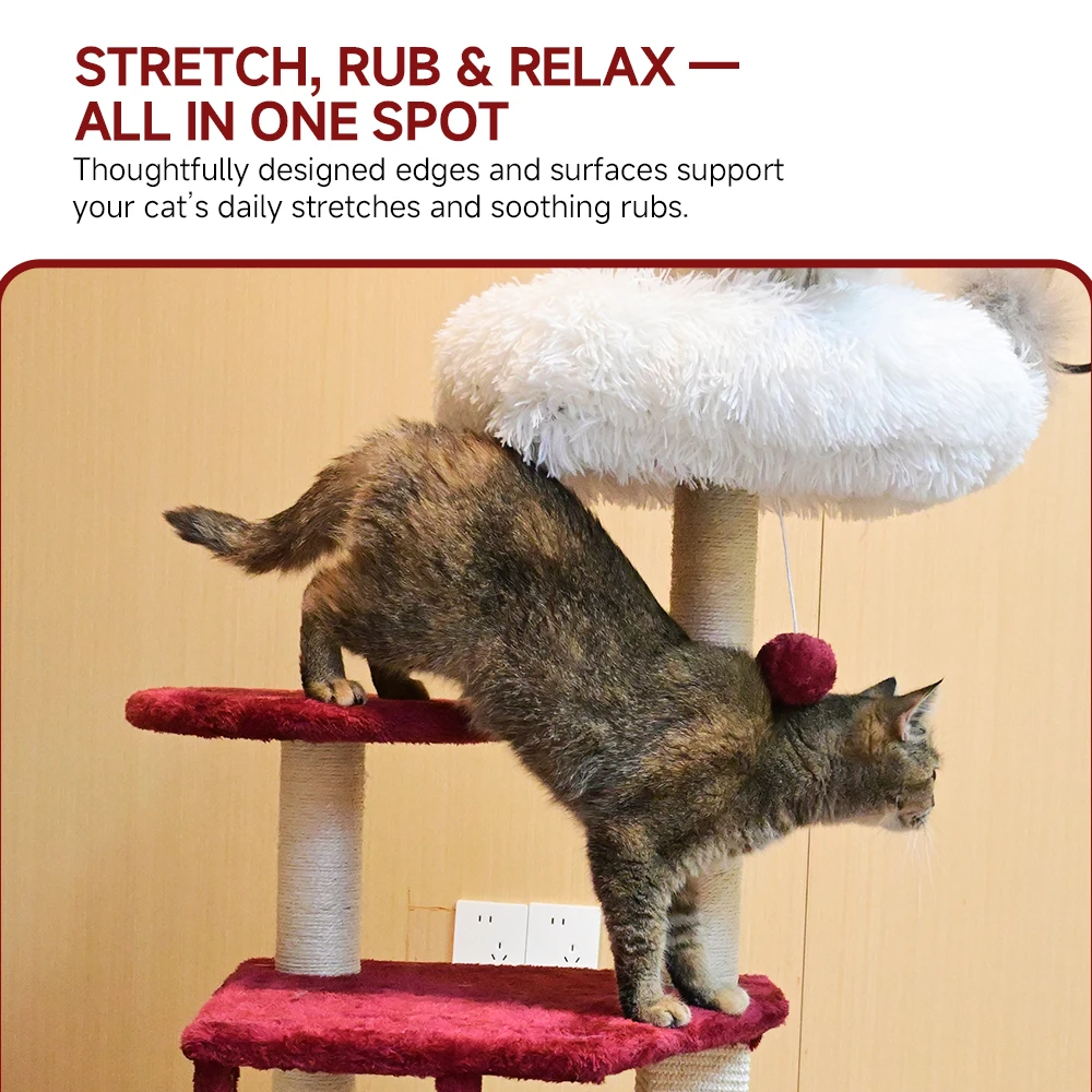 This cat tree tower serves as stylish indoor furniture, blending seamlessly with your home decor while fulfilling your cat's natural instincts.