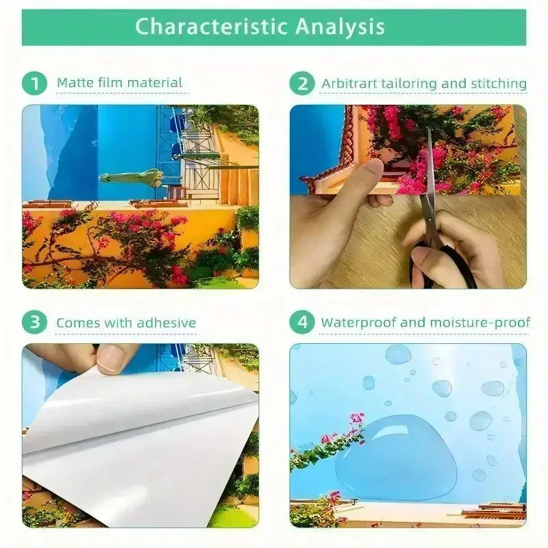 Feature 2: Easy operate, Self-adhesive peel and stick; Environmental Protection, Durable, Removable.