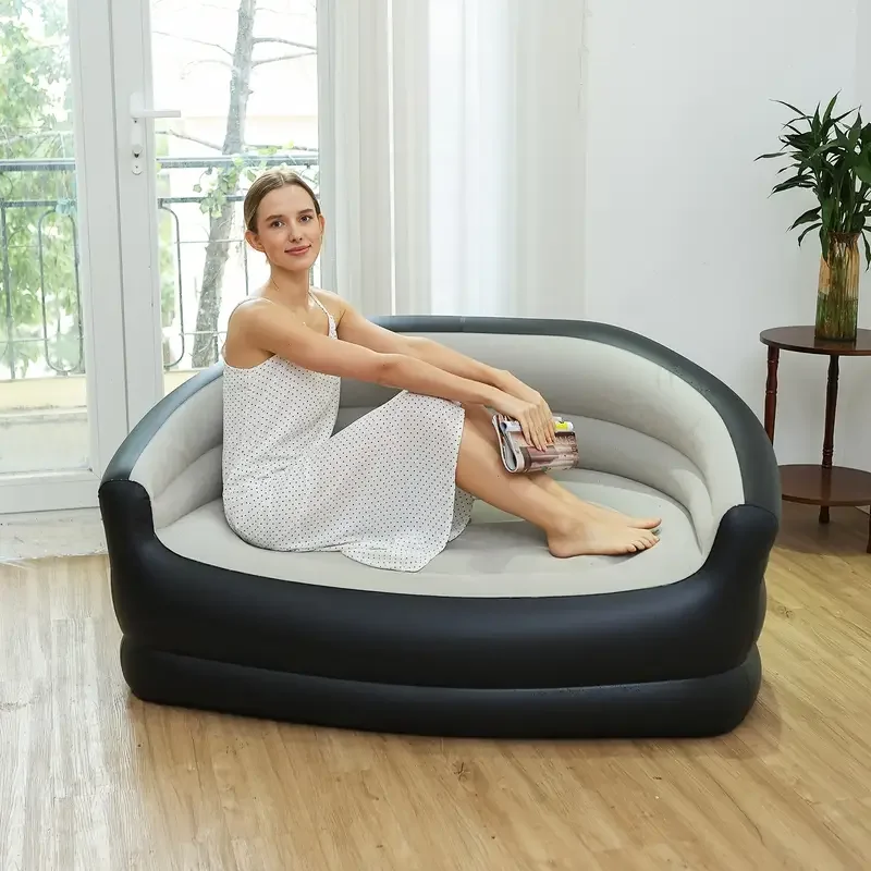 Outdoor Portable Inflatable Bed, Lounging Double Sofa, Folding Camping Inflatable Recliner, Flocking Outdoor Inflatable Sofa