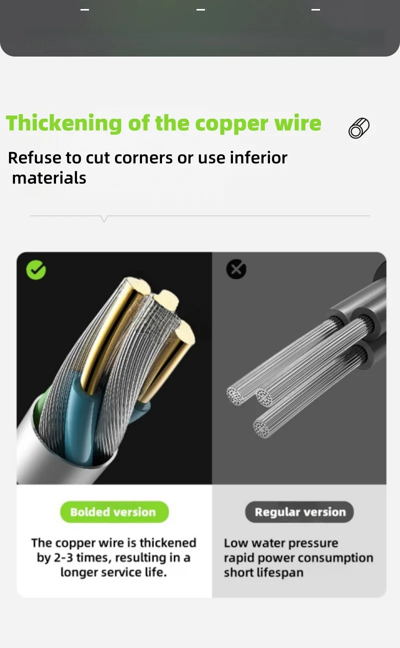 - Full-screen intelligent digital display, capable of real-time monitoring of water temperature and battery power