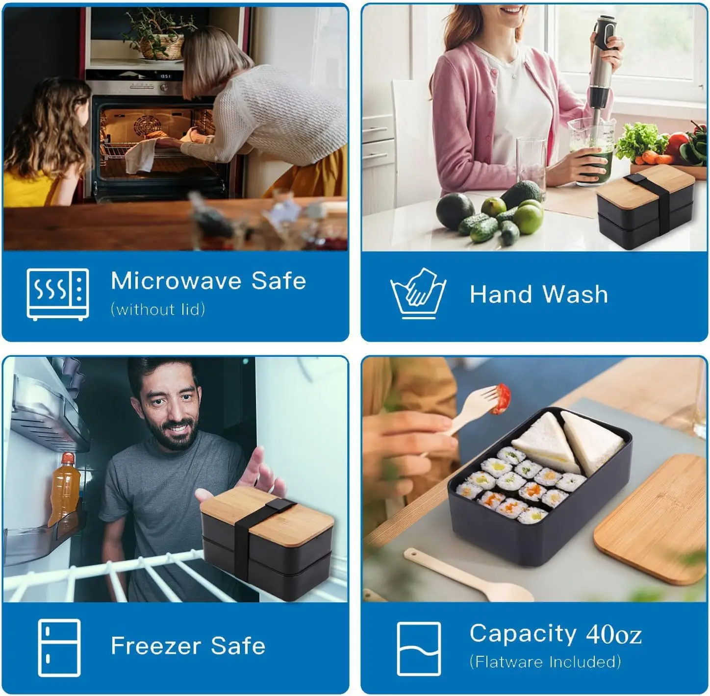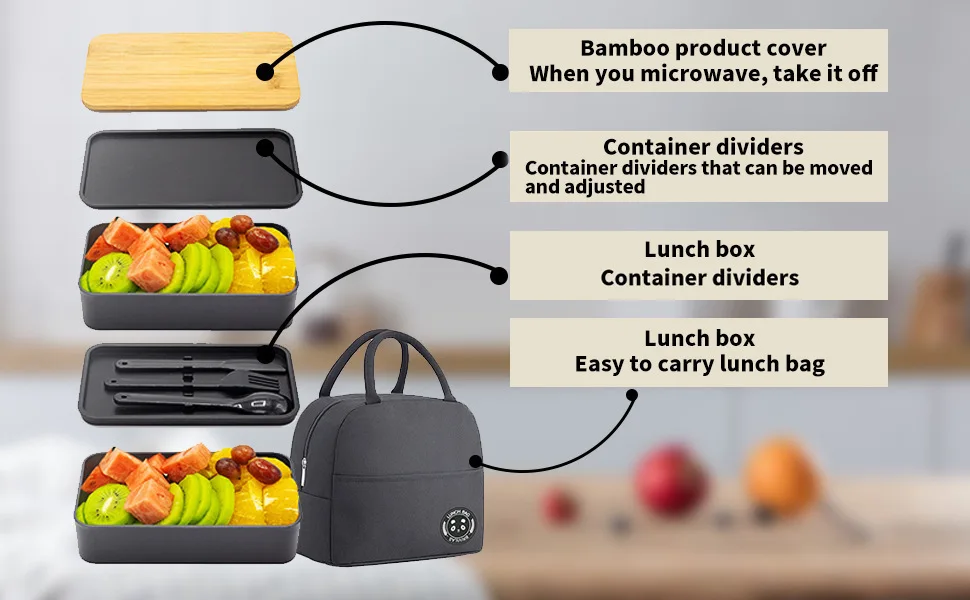 Stackable Bento Lunch Box with Insulated Bag Microwaveable Divided Large Capacity Bento Box for Office Workers and Students